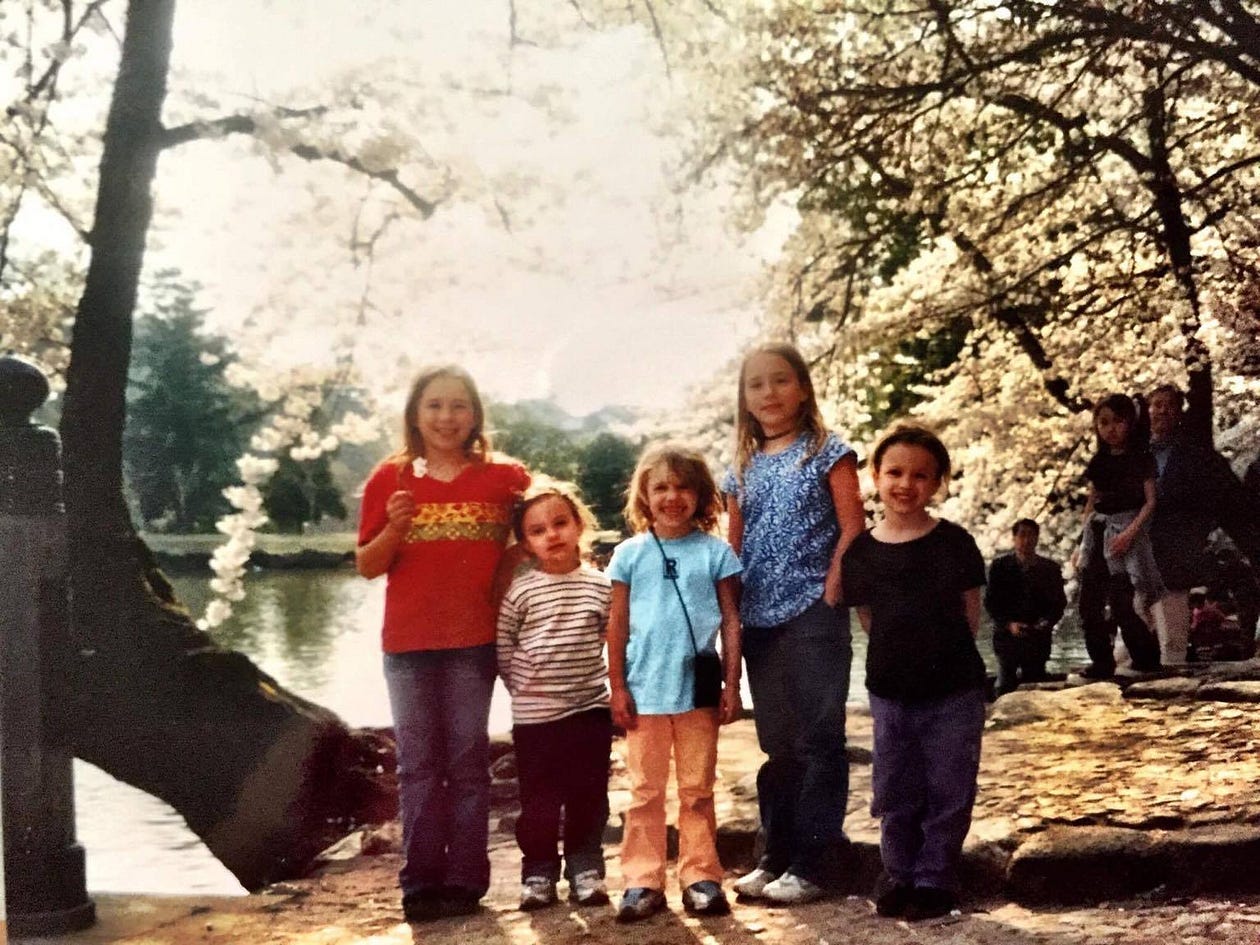 春には、物心がついたときから毎年欠かさずに舞い散る桜の花びらをひろった。夏には、花火に心躍らせ、火花でできた指や腕の火傷さえも気にしなかった。プールサイドでのラジオ体操にももちろん行った。秋には、妹たちと一緒に海のように積もった赤い落ち葉に埋もれて遊んだ。そして冬が来る頃には、みんなでガスストーブの前に集まり、暖を取った。近づきすぎて足がチリチリ。それでも私の頰は冷たいままだった。